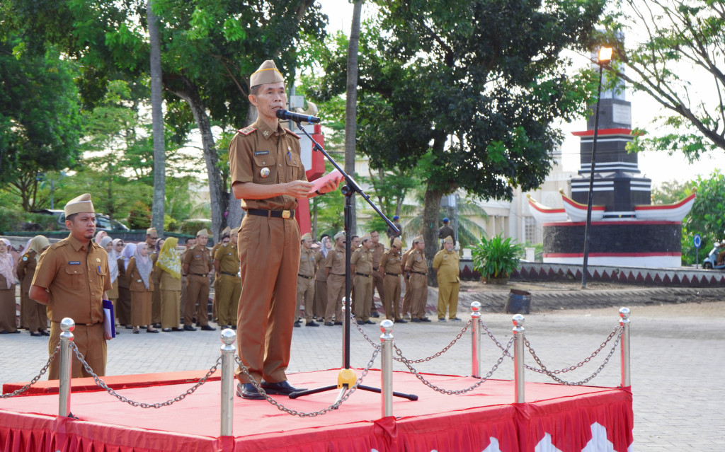 Lampung Selatan – Pelaksana tugas (Plt) Asisten Bidang Administrasi Umum Setdakab Lampung Selatan, Edy Firnandi, memimpin apel mingguan di lingkungan Pemerintah Kabupaten (Pemkab) Lampung Selatan, yang digelar di Lapangan Korpri, Kalianda, Senin, 7 Juli 2025.