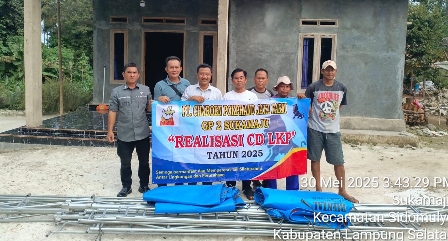 Lampung Selatan – PT Charoen Pokphand Jaya Farm unit GP2 Lampung salurkan bantuan 4 unit tenda di dua dusun yang ada di Desa Suka Maju Kecamatan Sidomulyo, Jum’at (30/5/2025)