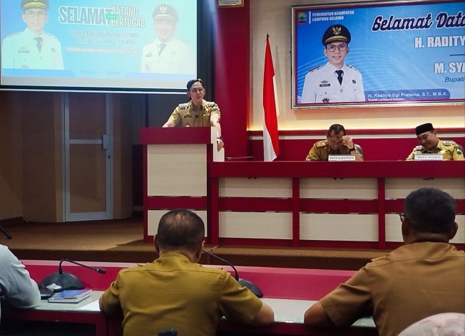 Lampung Selatan, infotrending.com – Bupati Lampung Selatan, Radityo Egi Pratama, memberikan arahan secara tegas kepada Organisasi Perangkat Daerah (OPD) dan para camat di hari pertama bekerja. Ia meminta seluruh jajarannya bekerja berdasarkan data, cepat, dan terprogram serta menggunakan hati.
