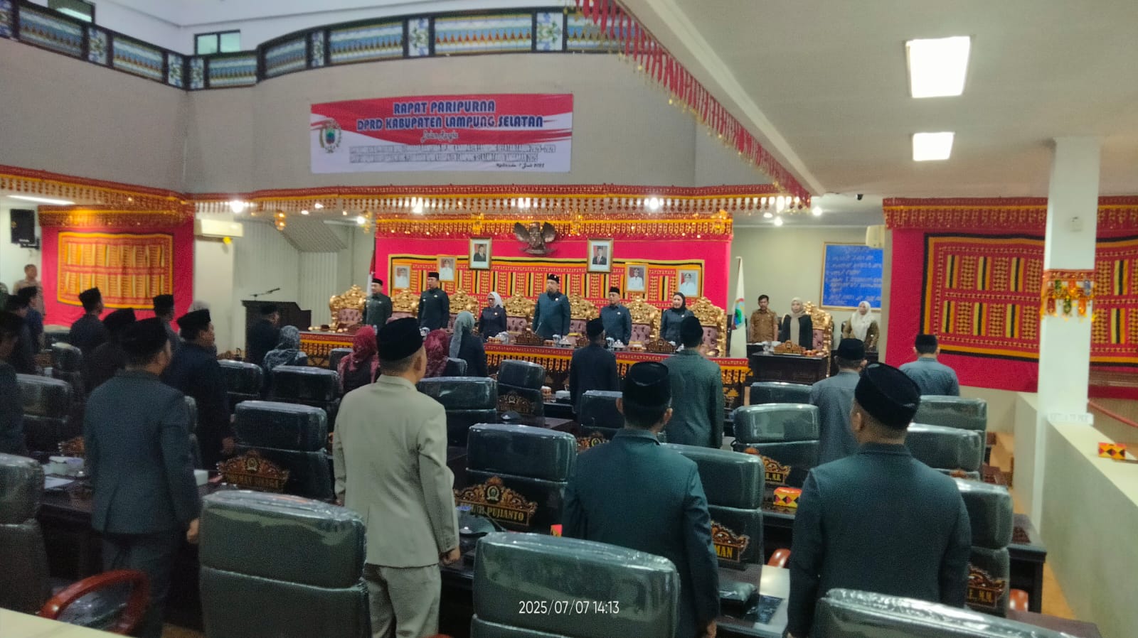 Rapat paripurna yang dipimpin langsung oleh Ketua DPRD, Erma Yusneli, dihadiri oleh Bupati Lampung Selatan, Wakil Bupati, unsur Forkopimda, para kepala OPD, serta tamu undangan lainnya.