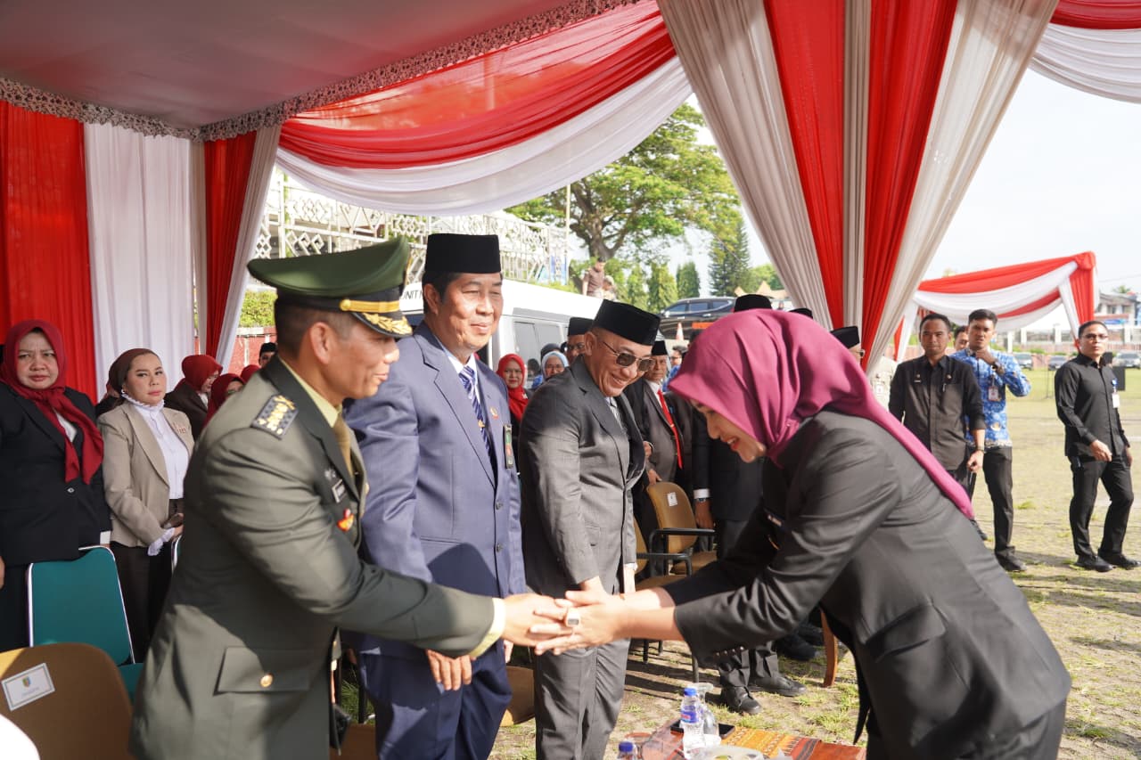 Lampung – Kepala Staf Korem 043/Gatam Kolonel Inf Sumarlin Marzuki, S.E., M.Han., bersama Forkopimda Provinsi Lampung menghadiri upacara peringatan Hari Kesaktian Pancasila yang digelar di Lapangan Korpri Kantor Gubernur Lampung, Jl. Wolter Monginsidi, Teluk Betung, Bandar Lampung, Rabu (01/10/2025).