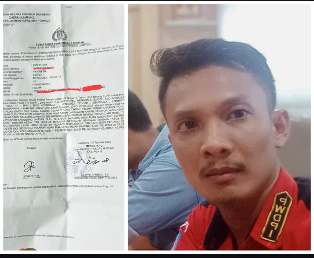Peristiwa pengeroyokan itu terjadi pada Jumat (29/8/2025) di Jalan Simpur, Kelurahan Menggala Tengah, Kabupaten Tulang Bawang. Berdasarkan laporan polisi Nomor: LP/B/602/VIII/2025/SPKT/POLDA LAMPUNG, korban mengaku dikejar dan dipukul oleh sekelompok orang bersenjata tajam. Laporan resmi telah dibuat di Polda Lampung sehari setelah kejadian.