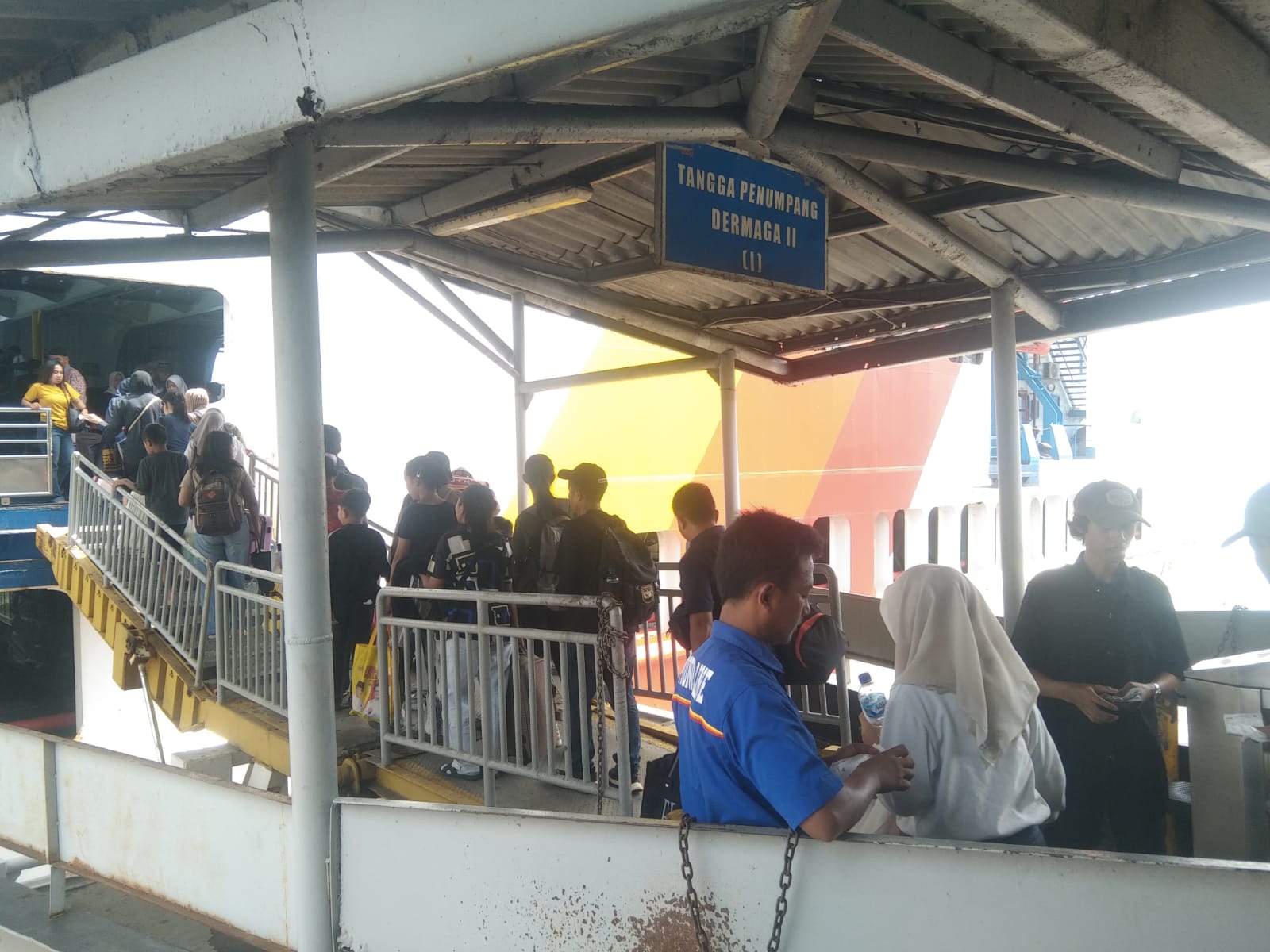 Lampung Selatan – Memasuki H+5 libur Natal dan Tahun Baru (Nataru), arus penumpang pejalan kaki yang akan menyeberang menuju Pelabuhan Merak, Banten, terpantau ramai lancar. Kondisi ini terlihat di area keberangkatan dermaga reguler Pelabuhan Bakauheni, Lampung Selatan, pada Selasa (30/12/2025).
