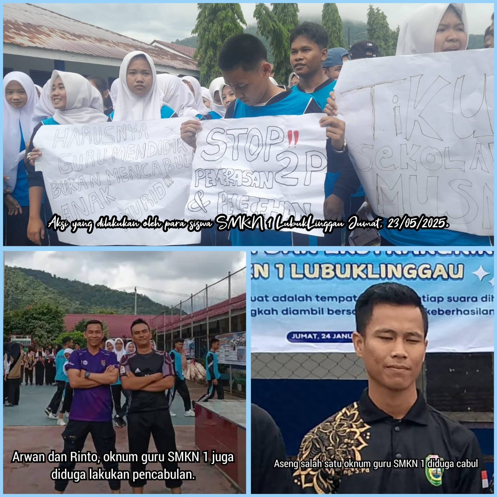 Namun tindakan tiga oknum guru diduga melakukan pencabulan pada belasan siswi di SMK Negeri I ini tidak patut dicontoh, akibat dari perbuatan cabul itu para pelajar SMK Negeri 1 Lubuklinggau, Jumat 23 Mei 2025 sekitar pukul 09.00 WIB mendadak demo di dalam sekolah.