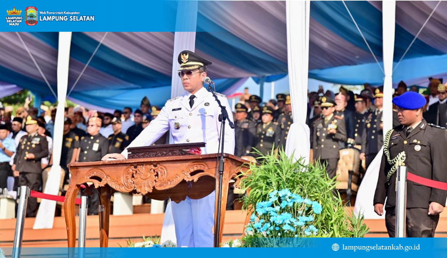 Bupati Egi, yang tampil gagah dalam Pakaian Dinas Upacara Besar, menegaskan bahwa peringatan HUT ke-80 Kemerdekaan Republik Indonesia di Menara Siger adalah simbol kebanggaan sekaligus identitas masyarakat Lampung Selatan.