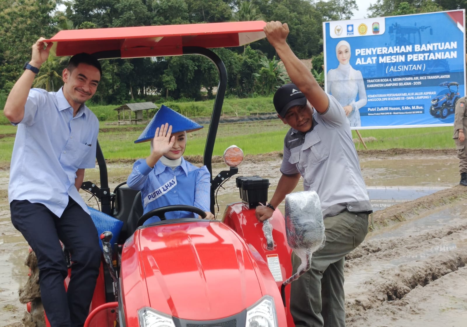 Lampung Selatan — Dalam upaya meningkatkan hasil produksi pertanian dan mendukung modernisasi sektor pertanian di daerah, Anggota DPR RI dari Komisi XII, Putri Zulkifli Hasan menyerahkan bantuan alat dan mesin pertanian (alsintan) kepada kelompok tani di wilayah Kecamatan Sidomulyo, Kabupaten Lampung Selatan, Kamis (15/5/2025)