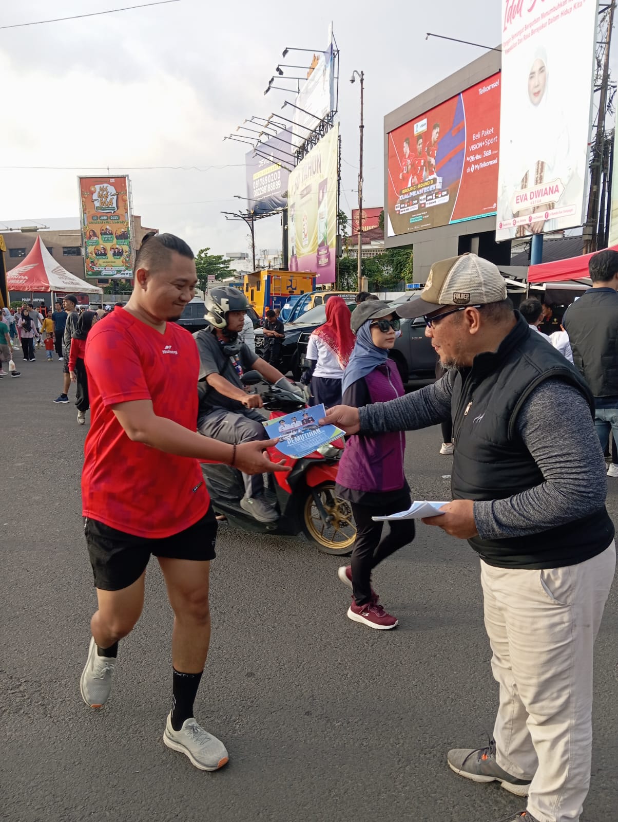 Bandar Lampung — UPTD Samsat Bandar Lampung turut berpartisipasi aktif dalam kegiatan Car Free Day (CFD) yang dirangkaikan dengan Bhayangkara Run ke-79 di kawasan Bundaran Tugu Adipura, Bandar Lampung, Minggu (22/6).