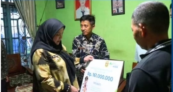 Bandar Lampung – Wali Kota Bandar Lampung, Hj. Eva Dwiana, nyeraho langsung santunan perlindungan pekerja liwat BPJS Ketenagakerjaan jama Ibu Miswati, warga Jl. Pulau Buton Gg. Sepakat II, Kecamatan Way Halim, Kota Bandar Lampung, di Kamis (15/02/2026).