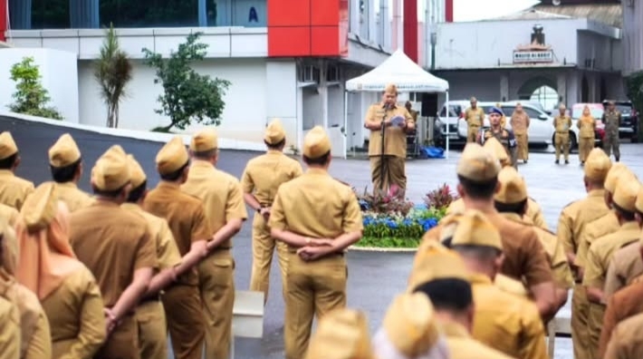 Bandar Lampung – Wali Kota Bandar Lampung Hj. Eva Dwiana yang diwakili oleh Asisten Bidang Administrasi Umum, M. Nur Ramdan, memimpin apel mingguan di halaman Kantor Pemerintah Kota Bandar Lampung, Senin (9/2/2026).